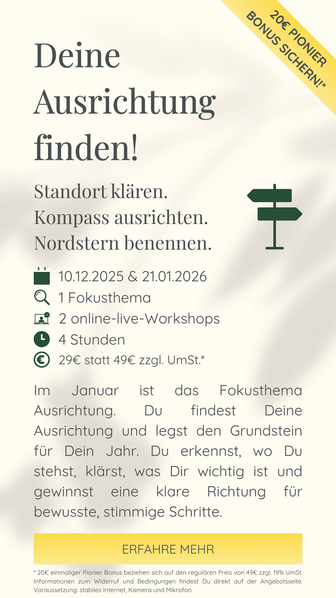 Du fühlst innere Unruhe, Entscheidungen fallen Dir schwer und Dein Weg wirkt unklar. Deine Gedanken kreisen, die vielen Rollen überfordern Dich und unsichtbare Hürden im Umfeld bremsen Dich aus. Alltagstrigger rauben Dir Energie, Selbstzweifel nagen an Dir und Selbstfürsorge bleibt liegen. Du reagierst, statt bewusst zu gestalten. Du glaubst Du bist alleine damit.
